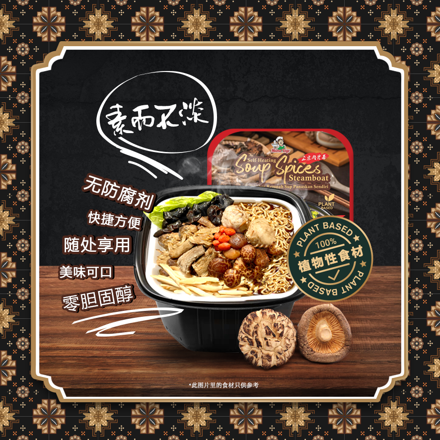 只需10-12分钟,就能煮自煮肉骨茶火锅。任何时候想要吃也没问题,早餐,午餐,下午茶,晚餐,宵夜都可以吃,也非常容易消化。熬夜加班,那就来一盒火锅补元气,营养健康。出外旅游,自热火锅方便快捷,省时又省力。